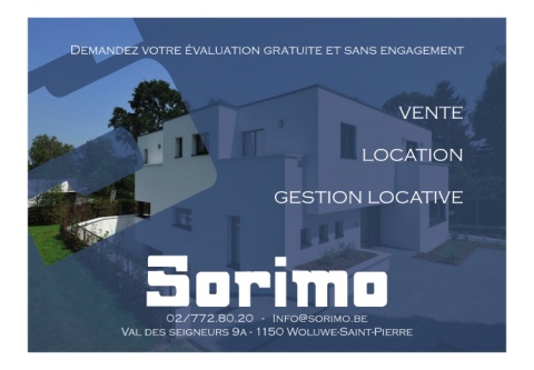 Demandez votre évaluation gratuite et sans engagement VENTE LOCATION GESTION LOCATIVE 02/772.80.20 - Info@sorimo.be Val des seigneurs 9a - 1150 Woluwe-Saint-Pierre