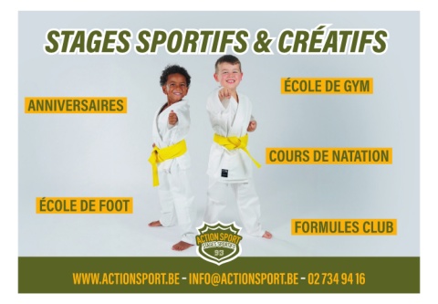 F S & C R R T I I F S É A T S STAGES SPORTIFS & CRÉATIFS A T G P O E S S ÉCOLE DE GYM ANNIVERSAIRES COURS DE NATATION ÉCOLE DE FOOT FORMULES CLUB WWW.ACTIONSPORT.BE – INFO@ACTIONSPORT.BE – 02 734 94 16